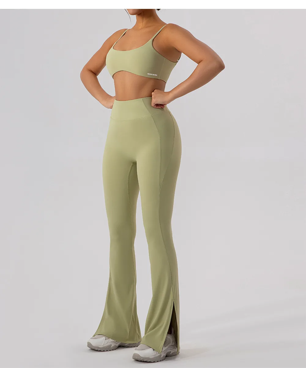 - Flared Leg with Side Slits – A modern twist on classic fitness wear for ultimate movement and breathability.